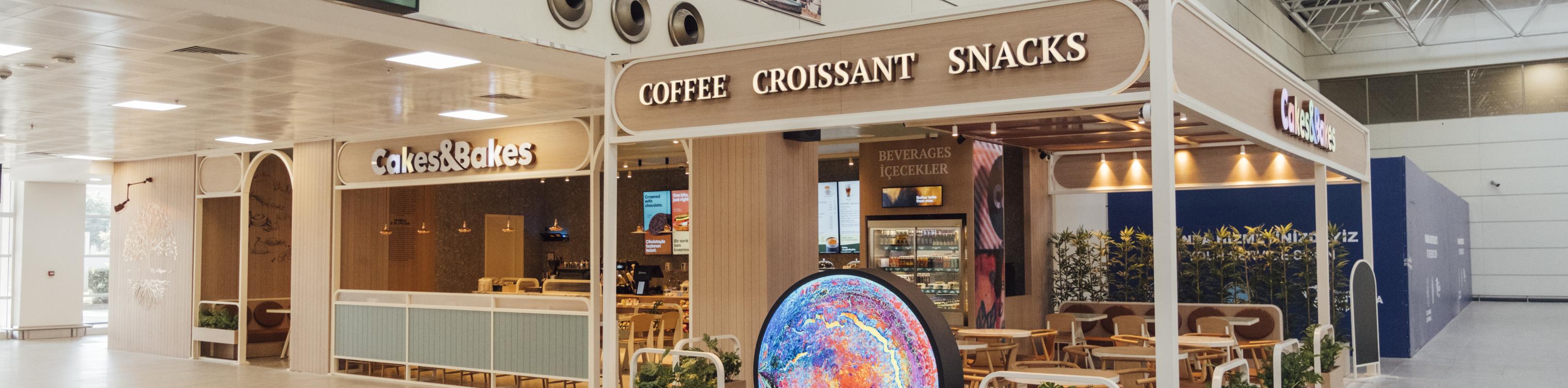 Cakes & Bakes, günün her saatine hitap eden sandviç, salata, sıcak yemek, diyet alternatifler, unlu mamuller, cheesecake ve pasta çeşitleriyle misafirlerimize lezzet dolu bir mola sunuyor. Uçuş öncesinde keyifli vakit geçirmek isteyen yolcular için tasarlanan özel mekanlarıyla hem pratik hem de özenle hazırlanmış lezzetleriyle havalimanı deneyimini zenginleştiriyor.